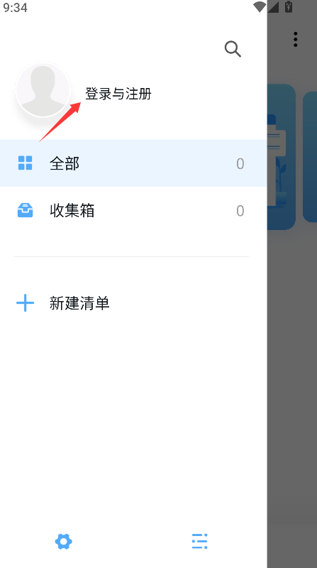 2、在侧边栏展开的功能列表中,定位"登录与注册"选项,点击后跳转至账户管理界面。