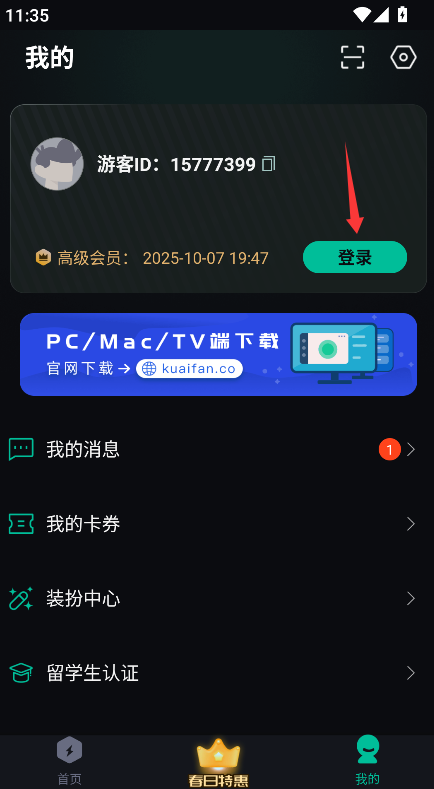 2、在个人中心页面顶部找到醒目的"登录"按钮,点击后系统会跳转至账户登录界面。