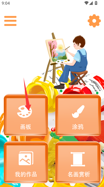 1、在主界面选择"画板"功能入口,点击后进入空白画布编辑页面,准备开始创作。