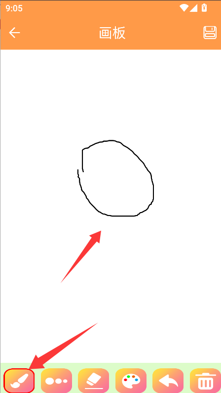 2、通过底部工具栏选择画笔类型、调整笔触大小,并从调色板选取所需颜色。