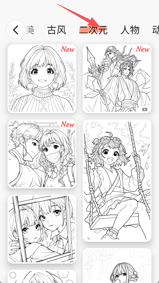 1、线稿类型丰富且新颖,不少线稿带有“New”标识,为用户带来新鲜的涂色素材。
