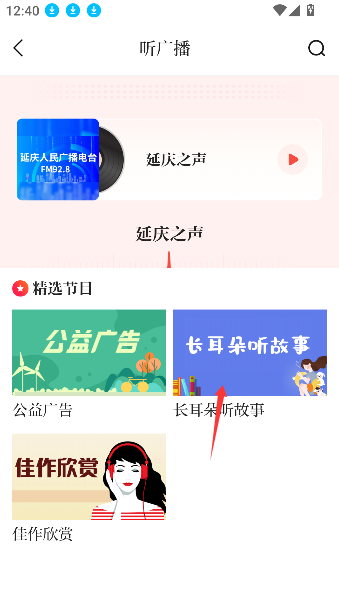 2、于广播页面中选择“长耳朵听故事”这一特定栏目,点击后即可转入专为儿童准备的故事列表界面。