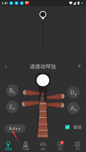 1、自动模式智能识别琴弦,拨动任意弦时自动切换至对应音名检测,简化操作步骤提升调音效率。