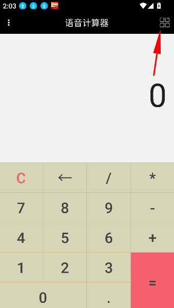 1、启动语音计算器应用后,在应用主界面右上角找到并点击齿轮或菜单功能图标,进入扩展功能页。