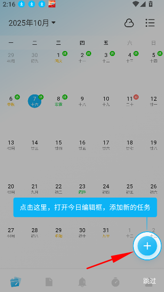 1、在应用主界面底部或右下角找到显眼的蓝色加号按钮,点击即可开始创建新的日程或任务。