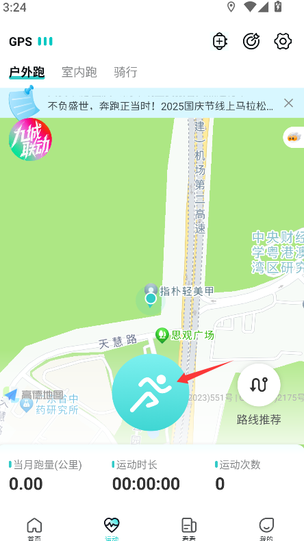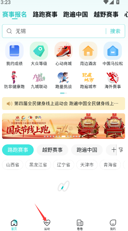 1、进入主界面后,找到并点击底部导航栏的“运动”按钮,页面将切换至运动功能主界面。
