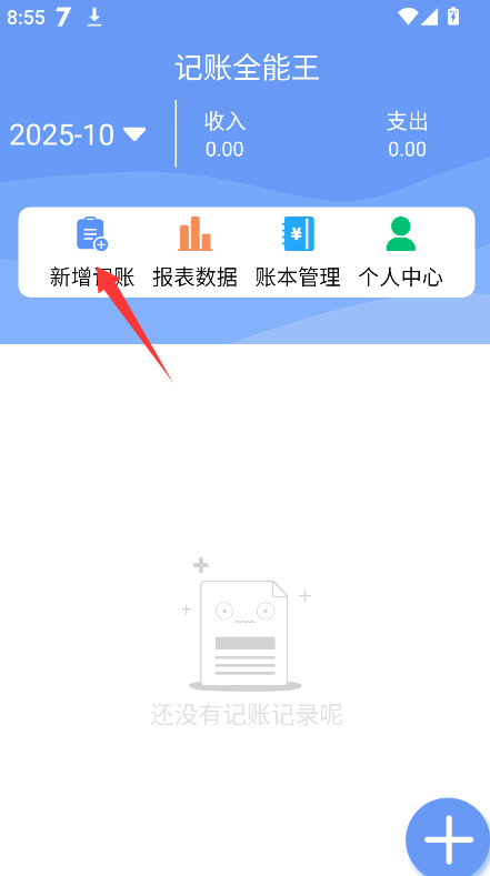 1、进入主界面后,点击屏幕上的“新增记账”按钮,即可进入详细的记账页面。