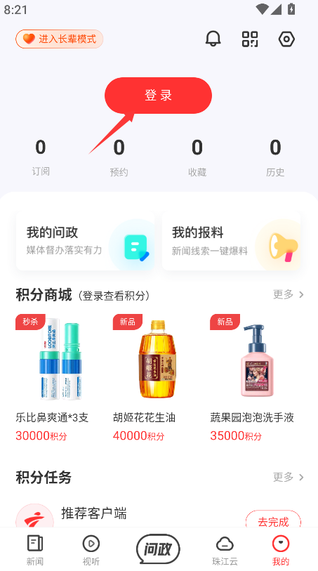 2、进入个人中心后,在页面显著位置可见红色“登录”按钮,轻触后跳转至账户验证界面。