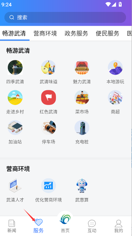 1、在主界面底部导航栏找到并点击最右侧的“服务”功能入口,进入综合服务页面。
