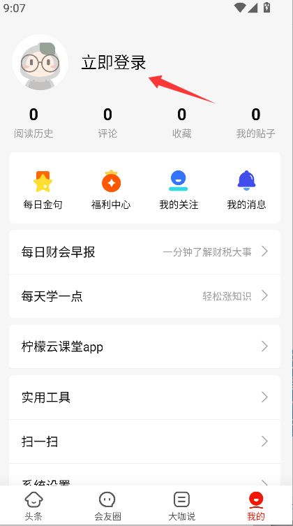 2、在“我的”页面中,注意界面上方区域,点击清晰标示的“立即登录”按钮,系统将引导至账户验证流程。