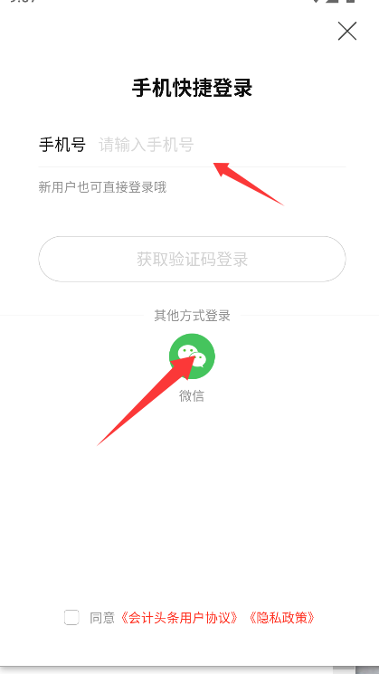 3、指定输入框内填写有效的手机号码,随后选择“获取验证码”方式完成身份验证与登录。