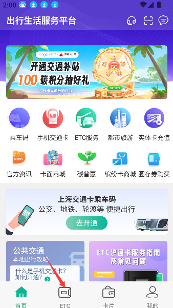 2、在页面底部的导航栏中,可以轻松找到如ETC、卡片管理等更多扩展服务选项。