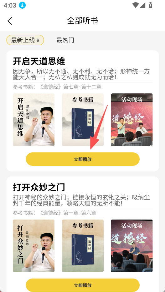 1、进入听书板块,选择喜欢的听书内容,点击立即播放。