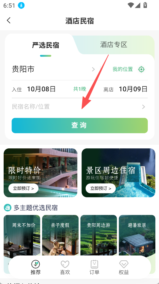 1、能便捷查询预订贵州酒店民宿,还有限时特价等住宿优惠。