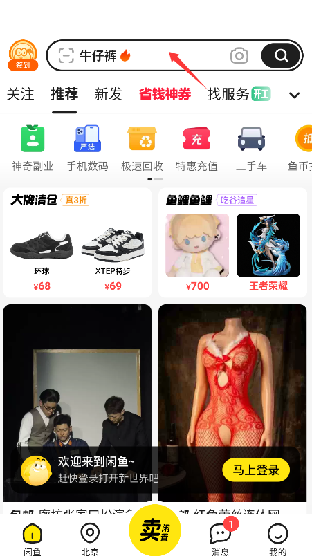1、在应用首页的顶部位置,在此处键入所需商品的具体名称或关键描述词,即可开始寻找过程。