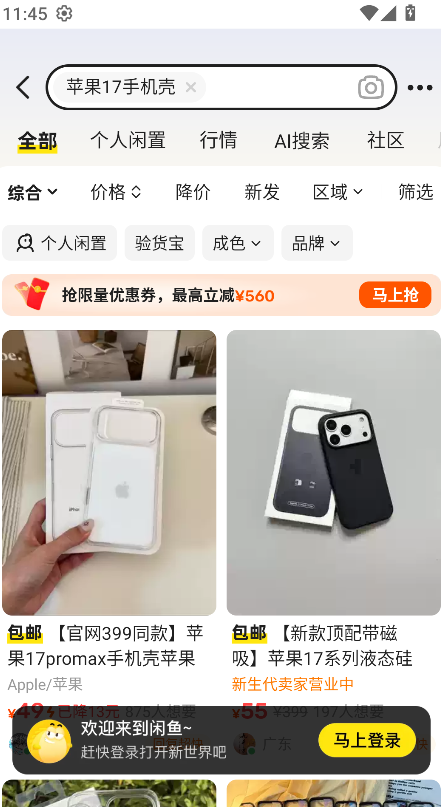 2、完成搜索后,界面会跳转至结果列表页,出现你搜索的物品。