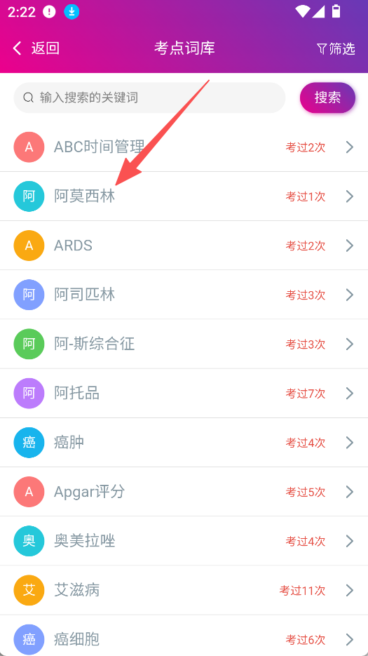 2、考点呈现清晰,设有考点词库,对每个考点标注考过次数,便于了解考点的重要程度。