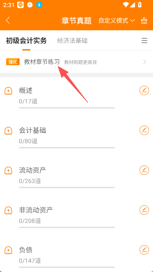 1、提供章节练习,进入“章节真题”,可选择教材章节,设置相关练习参数后开始答题。