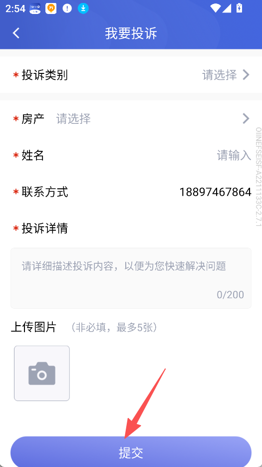 2、提供投诉服务,点击客户投诉,填写投诉类别、房产等信息后,可提交投诉申请。