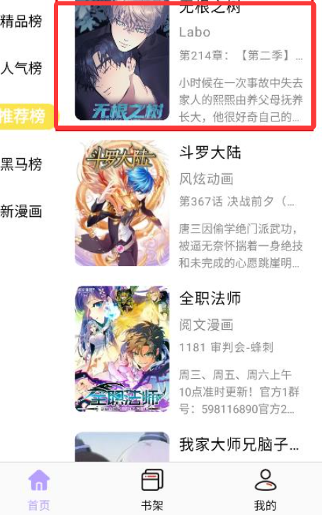 2、浏览并选择一部感兴趣的漫画作品,点击其封面或标题,进入该漫画的详细介绍页面。