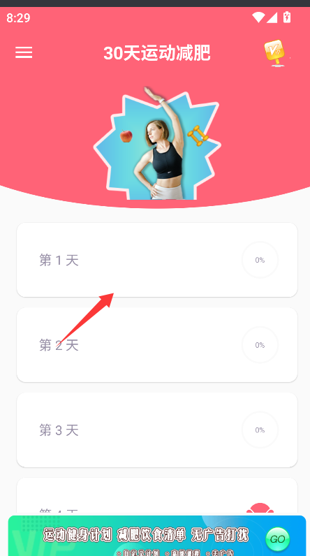1、找到并选择明确标有“第1天”的课程或计划选项,点击后应用将跳转至信息录入页面。