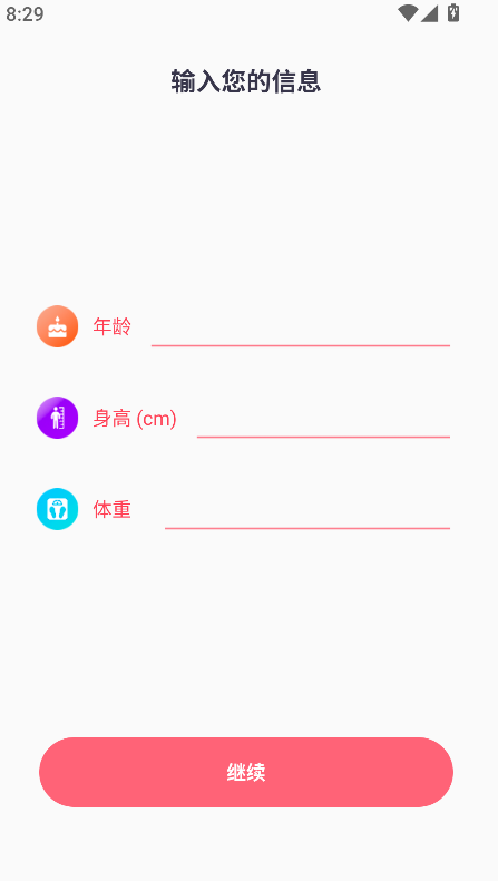 2、进入信息录入页面后,依照页面提示的字段顺序,依次准确填写基本身体数据。