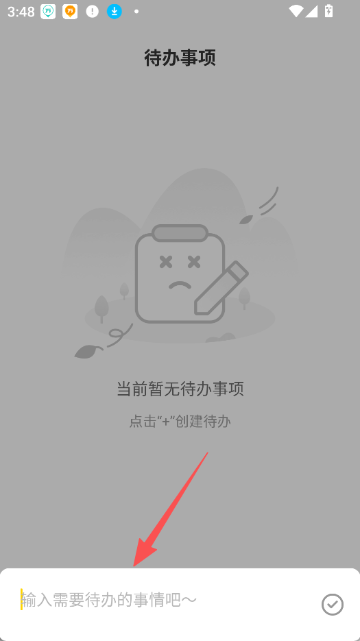 3、进入待办事项页面,在输入框输入待办事情,点击对勾创建待办。