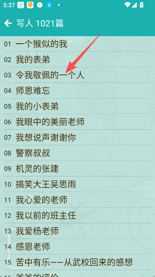2、在写人作文列表中,挑选想要查看的作文标题。