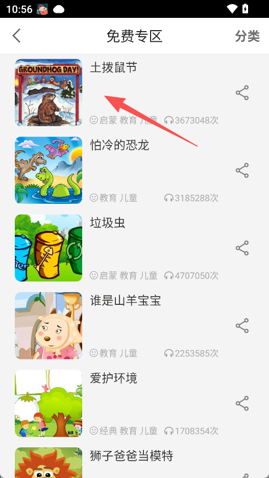 2、在故事列表里,点击土拨鼠节,进入故事播放页面。