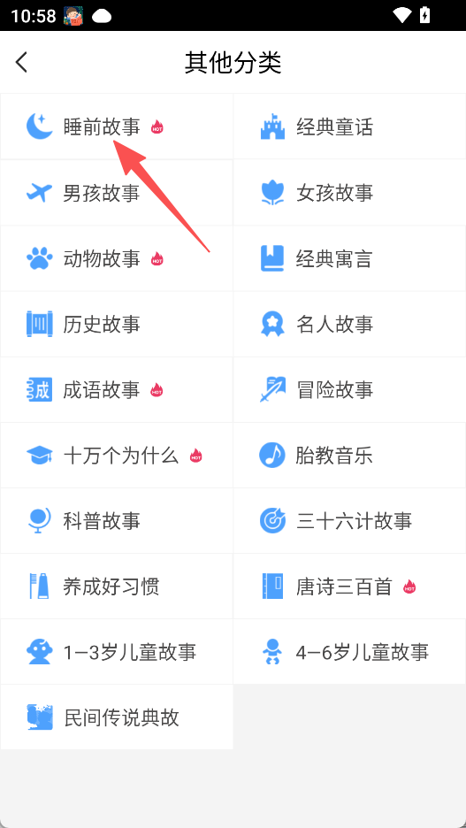 1、打开进入其他分类,点击睡前故事。