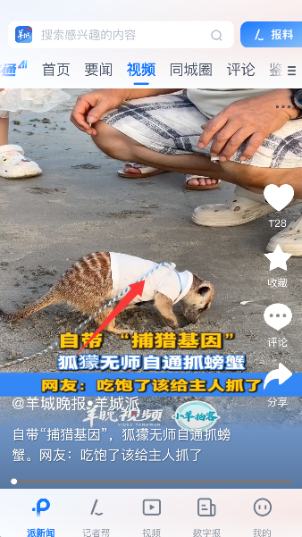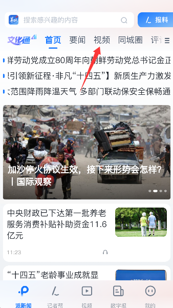 1、在羊城派新闻应用的首页中,找到并点击顶部或显眼位置的“视频”频道入口。