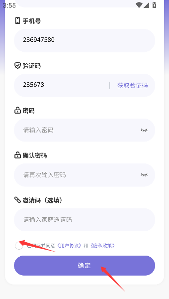 3、仔细阅读相关协议内容,勾选表示同意的复选框,最后点击确定按钮完成注册。