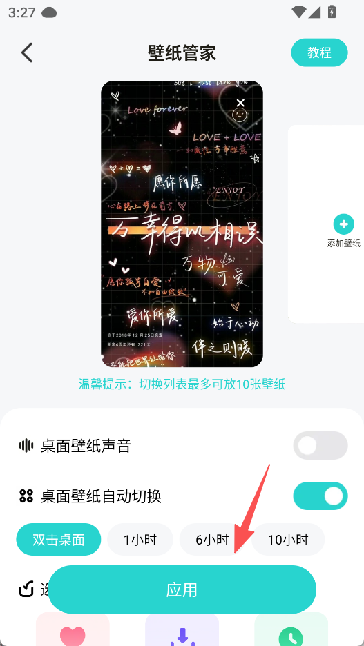 3、在壁纸管家页设置相关选项,点击“应用”。