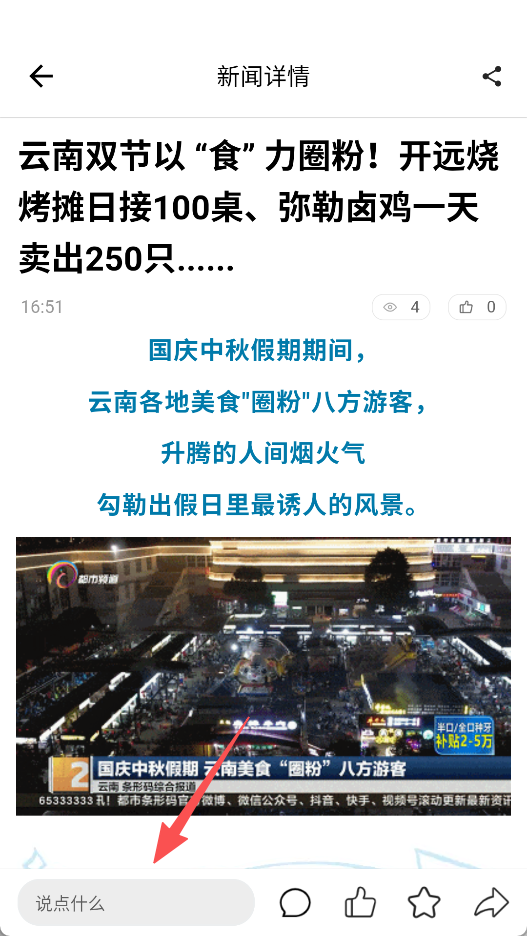 3、进入新闻详情页,可在底部进行评论、点赞等互动。