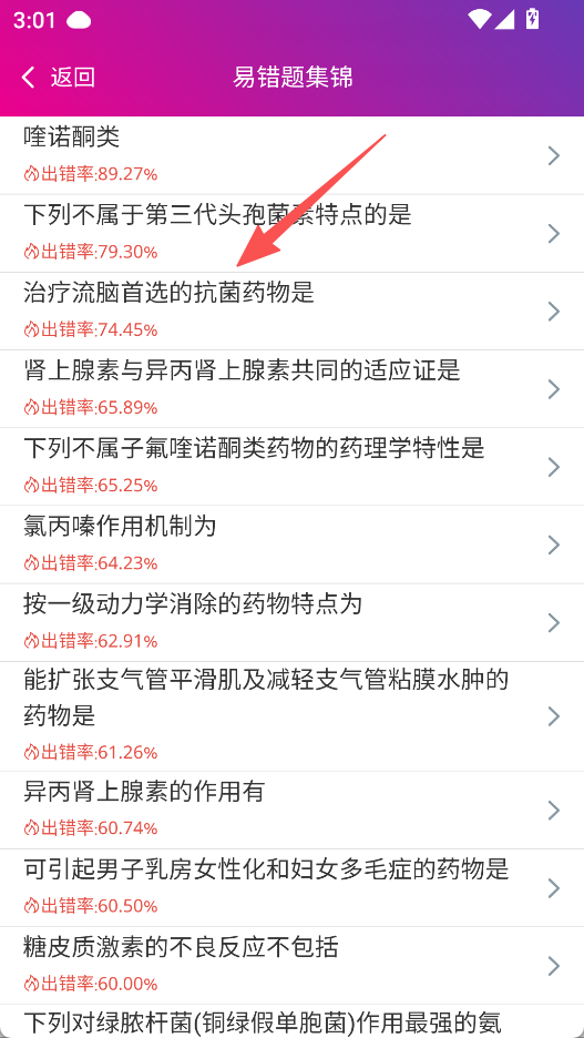 2、易错题集锦标注每道题出错率,直观展示题目难度和易错程度,方便针对性强化复习。