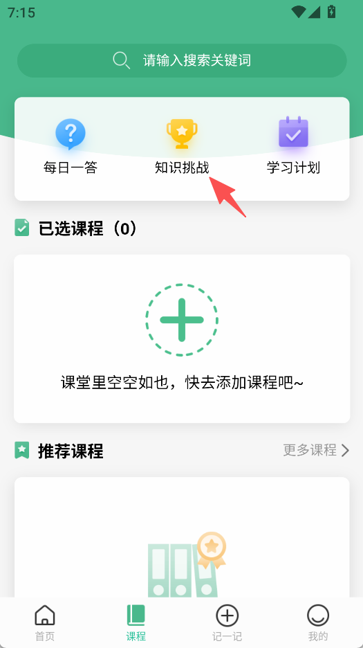 2、进入课程页面,参与每日一答、知识挑战等学习活动。