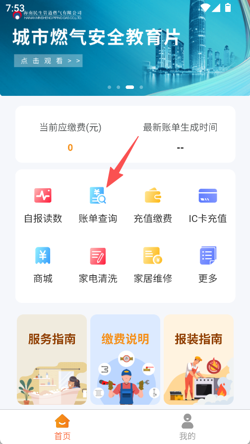 1、支持燃气服务,可查费用、账单,能自报读数、查询账单、充值缴费、IC卡充值。