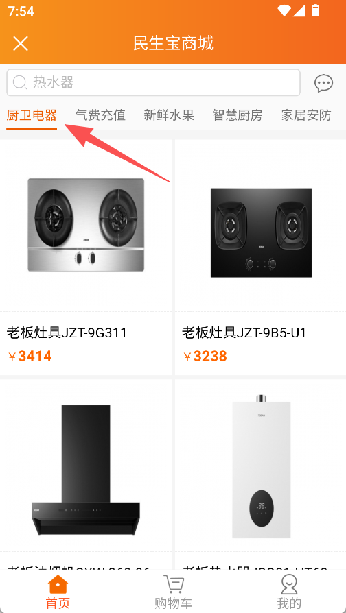 2、商城商品贴合燃气、家居场景,厨卫电器等分类下的商品满足配套需求。