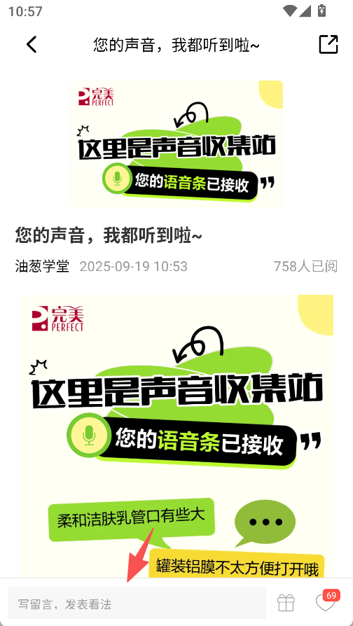 2、进入课程详情页,在底部输入框写留言,发表看法。