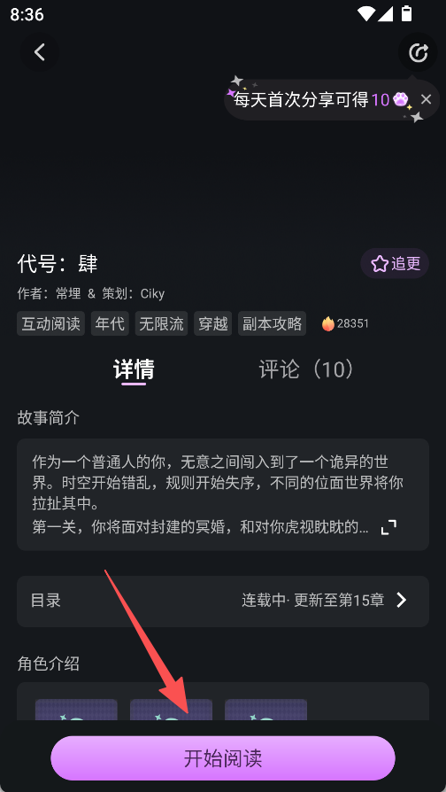 2、进入作品详情页,点击开始阅读,体验互动内容。