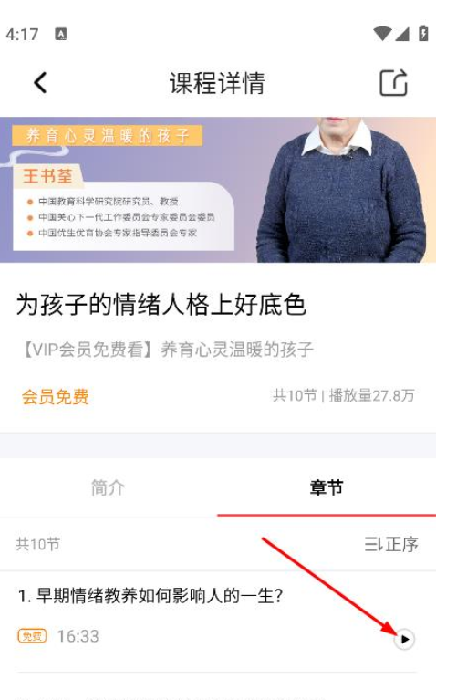 3、览章节列表,找到目标章节后,直接点击该章节的播放按钮。