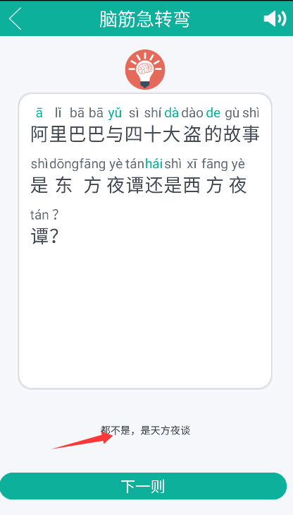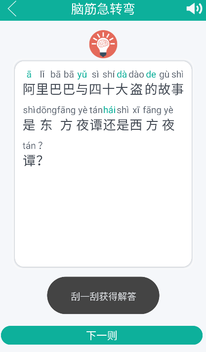 1、在软件主界面选择“脑筋急转弯”入口,即可进入专门的谜题界面,开始互动学习。