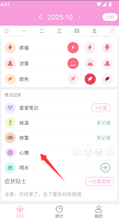 3、记录每日身体状态如痛经程度、情绪波动等,更好了解自身健康变化。