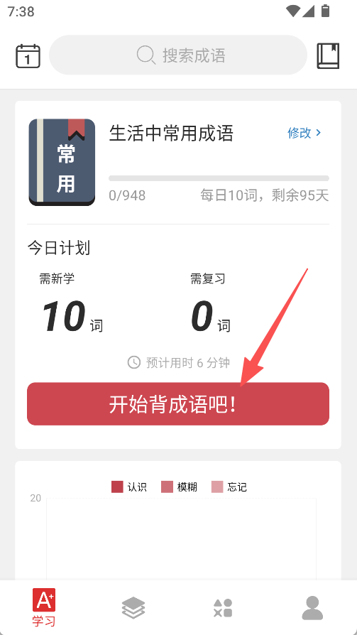 1、进入学习,点击开始背成语吧,进入成语学习页面。