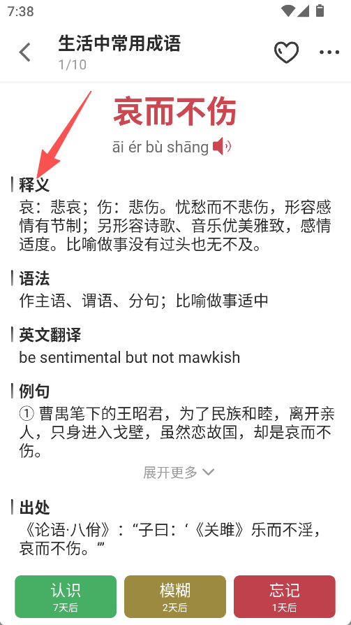2、聚焦成语知识体系,学习计划涵盖常用成语,词典详解释义、语法、例句、出处,实现从学习到深入理解的覆盖。