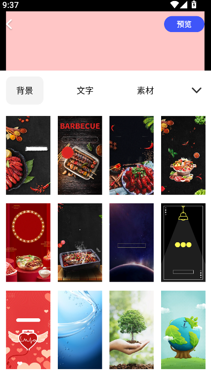2、在编辑页面中,先进行背景预览,可从系统提供的多种背景样式中选择合适的设计底图,为作品打好基础。