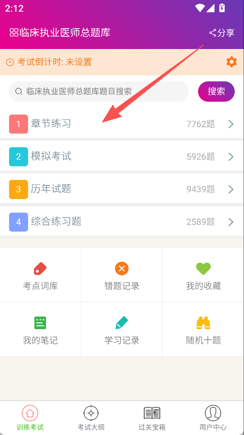 1、聚焦临床执业医师备考,设置章节练习、历年试题等板块,题库分类精细,覆盖备考全流程。
