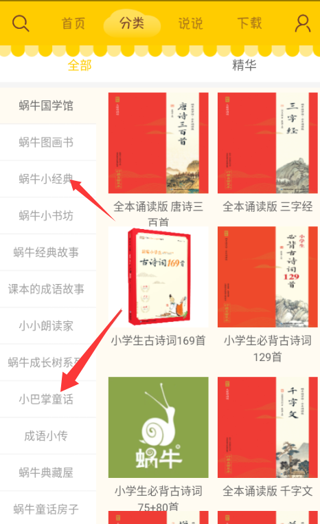 2、浏览左侧的分类列表,点击想阅读的书籍,右侧区域会随即展示该分类下的全部书籍列表。