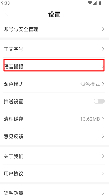 3、在设置中选择“语音播报”功能,即可进行声音切换,根据需求调整语音播报的类型或语调。