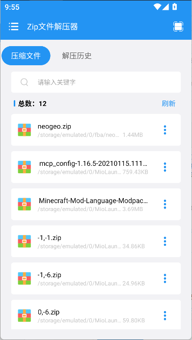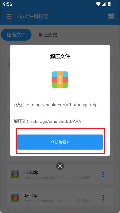 1、打开Zip文件解压器后,系统会自动搜索本地压缩包,可直接选择文件进行快速解压操作。